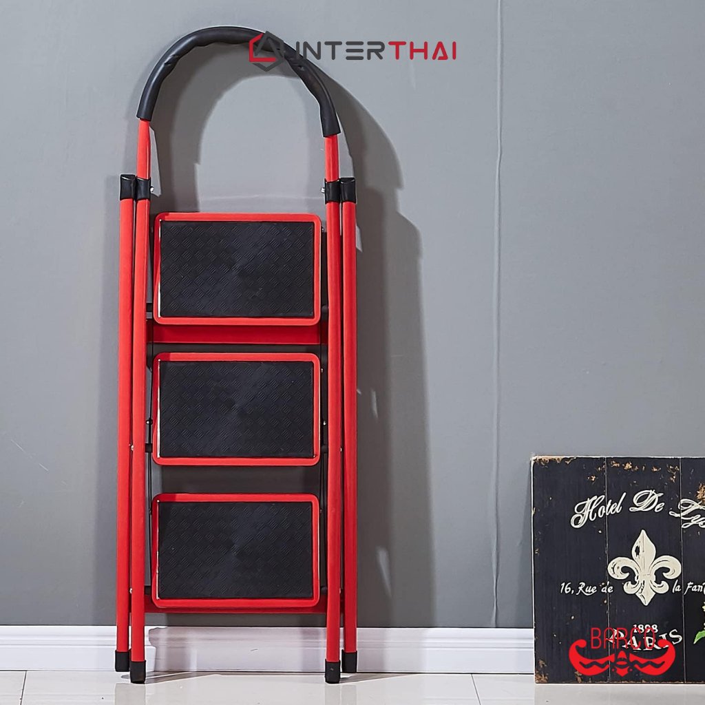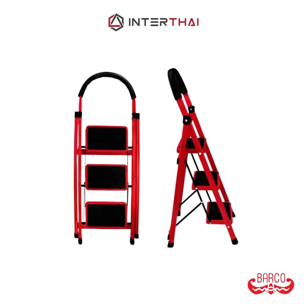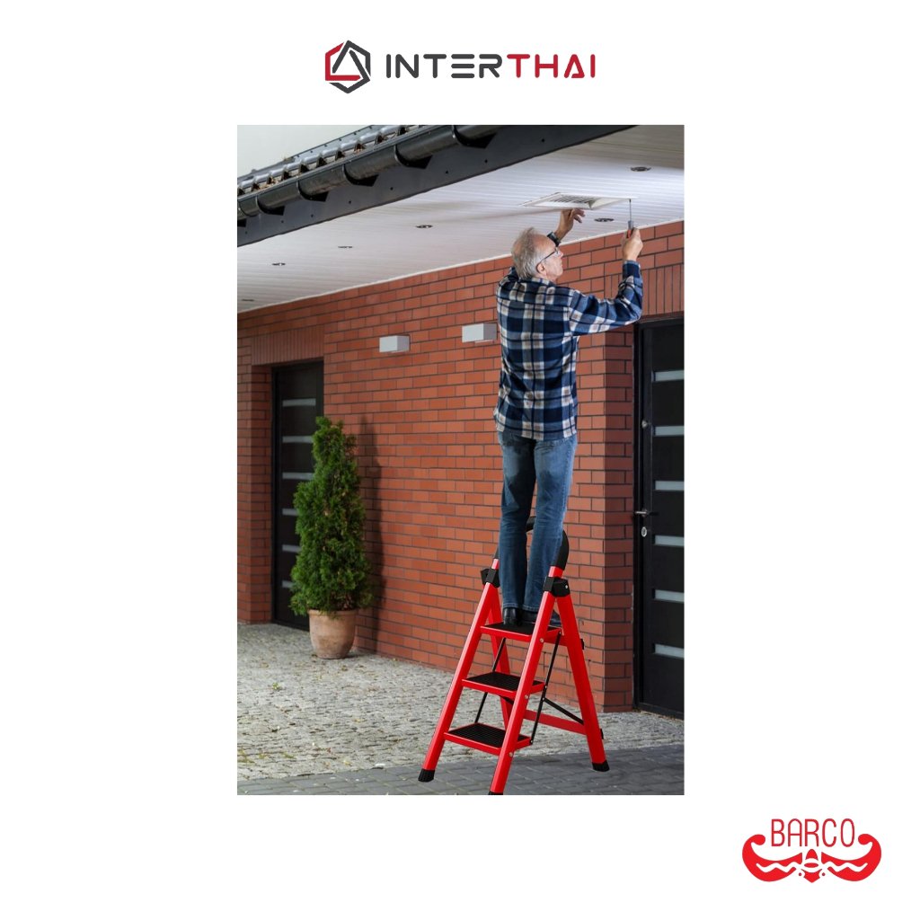 BARCO บันไดเหล็กกล้ามีราวจับ รุ่นน้ำหนักเบา 3 ขั้น สีแดง