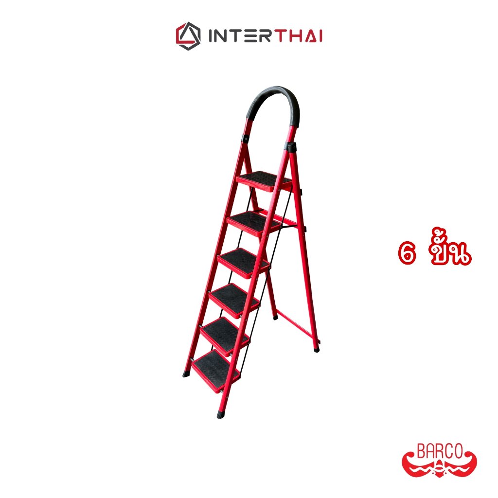 BARCO บันไดเหล็กกล้ามีราวจับ รุ่นน้ำหนักเบา 6 ขั้น สีแดง