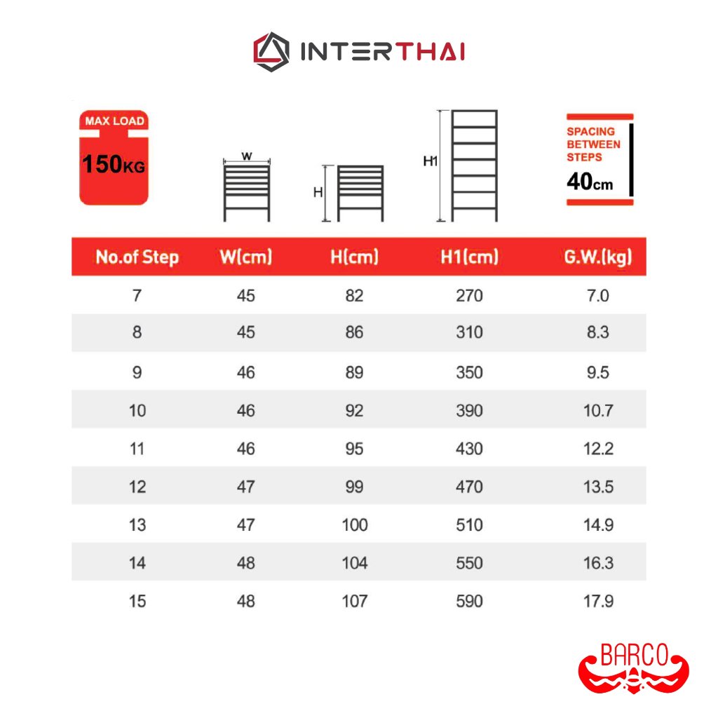 BARCO บันไดยืดหด ทรงพาด (เหล็กกล้า) รุ่น 7 ขั้น 2.7 เมตร