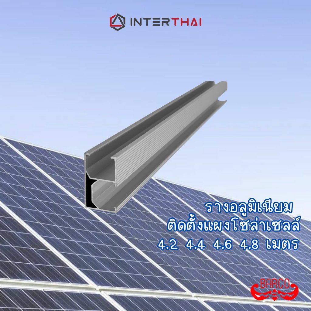 BARCO รางอลูมิเนียม สำหรับติดตั้งแผงโซล่าเซลล์ สีชุบขาว ยาว 4.2 4.4 4.6 4.8 เมตร