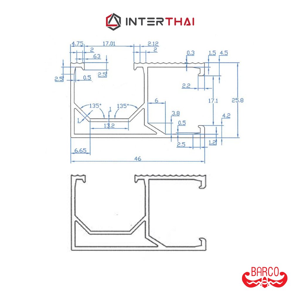 BARCO รางอลูมิเนียม สีชุบขาว ยาว 2.1 2.2 2.3 2.4 เมตร