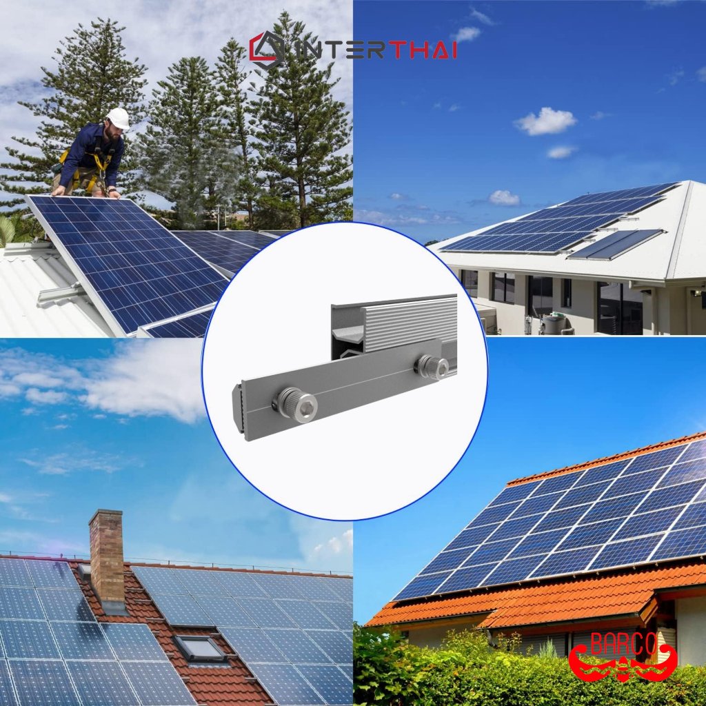 BARCO Rail Splice ตัวต่อรางโซล่าเซลล์ สีชุบขาว คุณสมบัติเฉพาะ: - สำหรับติดตั้งโซล่าเซลล์เท่านั้น - ผลิตจากอลูมิเนียม 6063 ที่ได้มาตรฐาน แข็งแรงทนทาน - ผิวชุบขาว ทนทุกสภาพอากาศ ป้องกันสนิมตลอดการใช้งาน - หน้าดายชนิด Solid เพิ่มความเเข็งแรงให้กับรางมากยิ่งขึ้น - มีลายเส้นเพิ่มความแข็งแรง - น้ำหนักเบาไม่เป็นภาระเมื่อติดตั้ง ข้อมูลสินค้า - ความแข็ง 10-15 WB วิธีการติดตั้ง 1. ติดตั้งขายึดรางตัว L เข้ากับโครงหลังคา 2. ติดตั้งรางอลูมิเนียมเข้ากับขายึดราง ขันให้แน่น - ใช้ตัวต่อรางเพื่อเชื่อมราง 2 เส้น เข้าด้วยกัน (ในกรณีที่รางยาวไม่พอ) 3. วางแผงโซล่าเซลล์ในตำแหน่งที่ถูกต้อง 4. ใช้ยึดกลางหรือยึดขอบล็อคแผงเข้ากับรางอลูมิเนียม ขันให้แน่น ราคารวม VAT แล้ว
