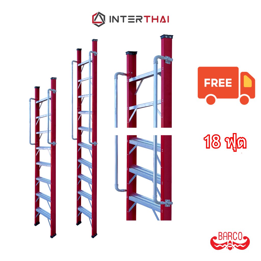 BARCO บันไดพาดไฟเบอร์กลาส มีราวจับ 18 ฟุต 540 ซม. รับได้ 150 กิโลกรัม