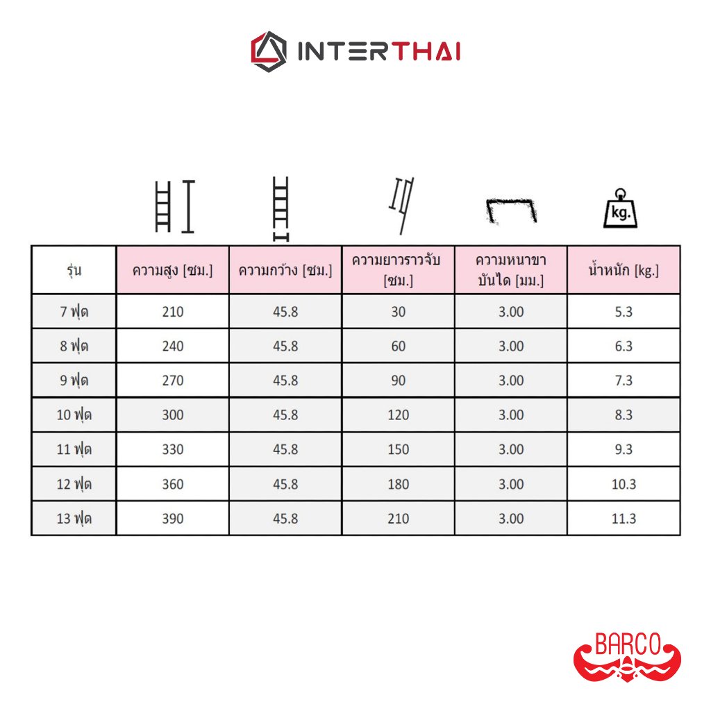 (ส่งฟรี) BARCO บันไดพาดไฟเบอร์กลาส มีราวจับ 11 ฟุต 330 ซม. รับได้ 150 กิโลกรัม