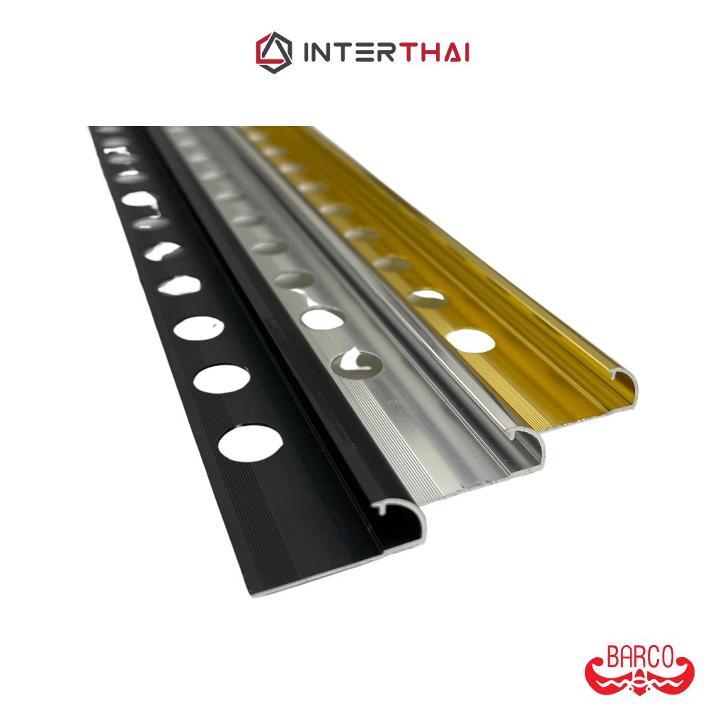 BARCO คิ้วกระเบื้องอลูมิเนียม โค้ง ยาว 2 เมตร คุณสมบัติเฉพาะ: - วัสดุ อลูมิเนียม 6063 แข็งแรงทนทาน ไม่แตก ไม่ขึ้นสนิม - ผิวชุบสีทอง ชุบสีเงิน ชุบสีดำ - ออกแบบพิเศษมีเขี้ยวรับกระเบื้องและมีเล็บปิดรอยต่อ - มีร่องยึดปูนได้ดียิ่งขึ้น ข้อมูลสินค้า - ใช้สำหรับติดตั้งปิดขอบกระเบื้อง เพื่อความสวยงาม - สามารถป้องกันการกระแทกกระเบื้องโดยตรง - มีให้เลือก 3 ขนาด 11 มม. 13 มม. 15 มม. - ความหนา 1.0 มม. - ความยาว 200 ซม. ข้อควรระวัง - เลือกขนาดของคิ้วให้ตรงความหนาของกระเบื้อง - เมื่อติดตั้งเสร็จเเล้ว ห้ามใช้ของมีคมในการขัดทำความสะอาด
