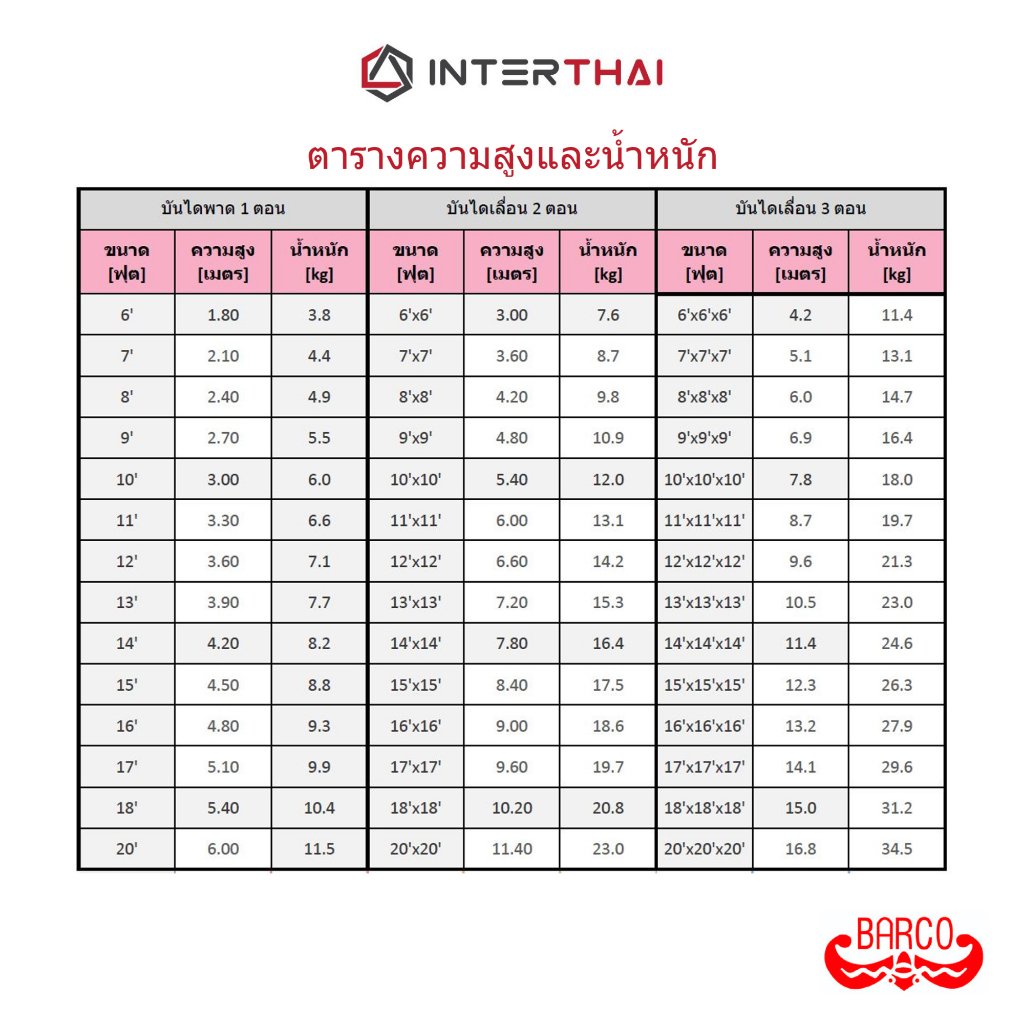 (ส่งฟรี) BARCO บันไดเลื่อนสไลด์ รุ่น 8 ฟุต 1ตอน 2ตอน 3ตอน รับได้ 150 กิโลกรัม