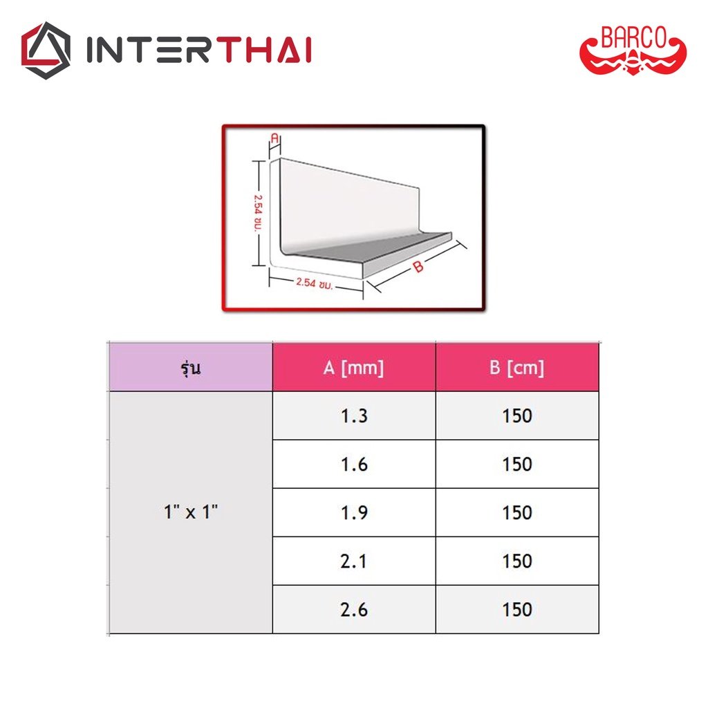 ฉากอลูมิเนียม 1นิ้วx1นิ้ว ยาว 150 cm. หนา 1.3 - 2.6 mm.