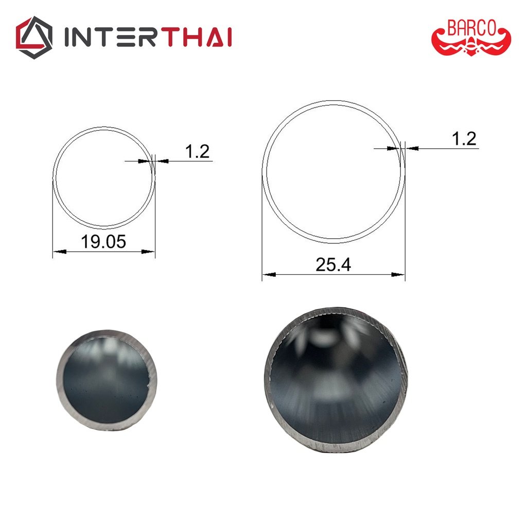 BARCO ท่อกลม แป๊ปกลมอลูมิเนียม 6 หุน 1 นิ้ว ยาว 120 ซม. คุณสมบัติเฉพาะ: - อลูมิเนียมเกรด 6063 - อลูมิเนียมผิวธรรมชาติ - วัสดุไม่ขึ้นสนิม - เป็นสินค้าDIY สามารถปรับใช้งานได้หลายรูปแบบ - ความยาว 120 ซม. ข้อมูลสินค้า - อลูมิเนียมหนา 1.20 มิล หนาพิเศษ - มีความโต 2 ขนาด 1 นิ้ วและ 6 หุน - ขนาดสัดส่วนสามารถดูเพิ่มเติมได้ในรูป จำหน่ายตามความยาวที่กำหนดเท่านั้น