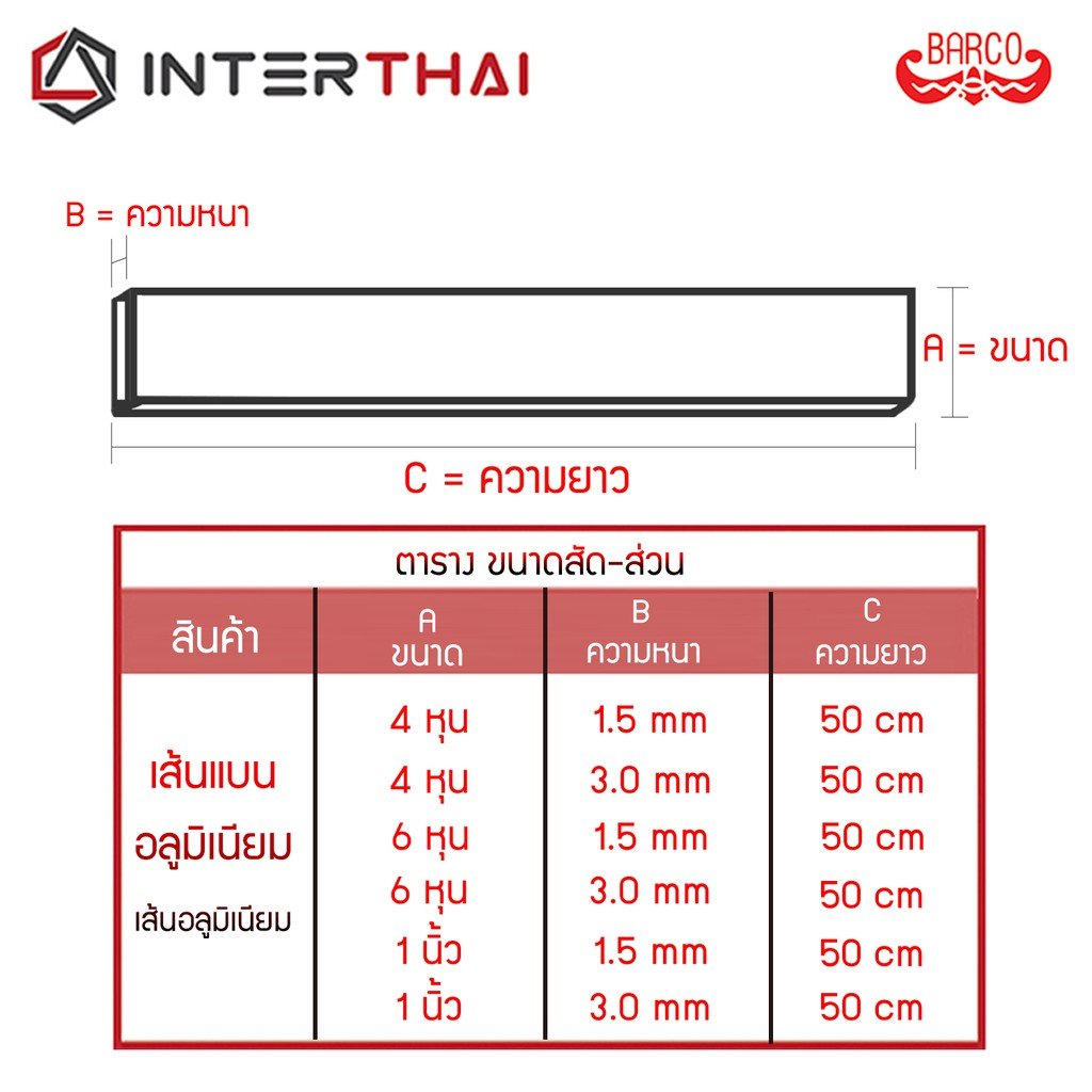 อลูมิเนียมเส้นแบน 4หุน 6หุน 1นิ้ว ยาว 50 ซม