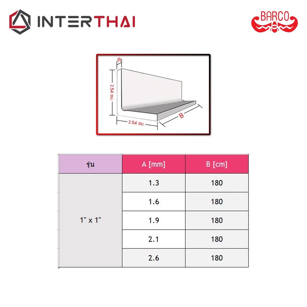 ฉากอลูมิเนียม 1นิ้วx1นิ้ว ยาว 180 cm. หนา 1.3 - 2.6 mm.